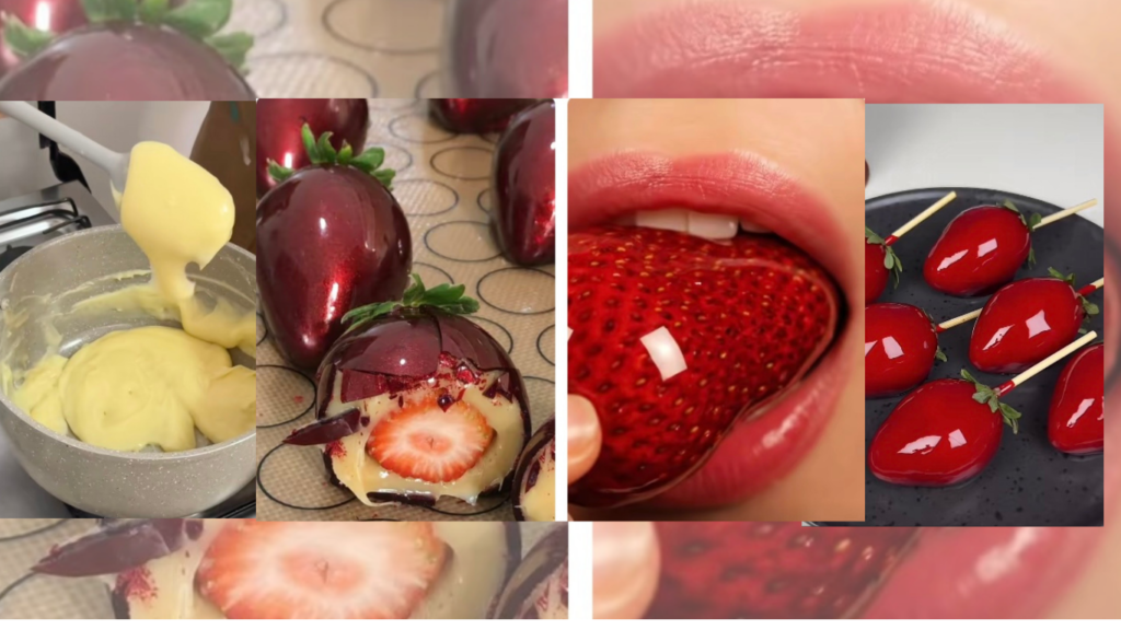 1️⃣ Você aprende a receita certa e o truque da cobertura crocante – aquela que deixa o morango com brilho irresistível e valor de doce gourmet, sem gastar mais.